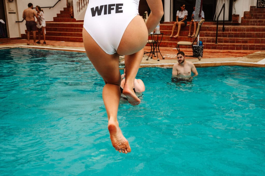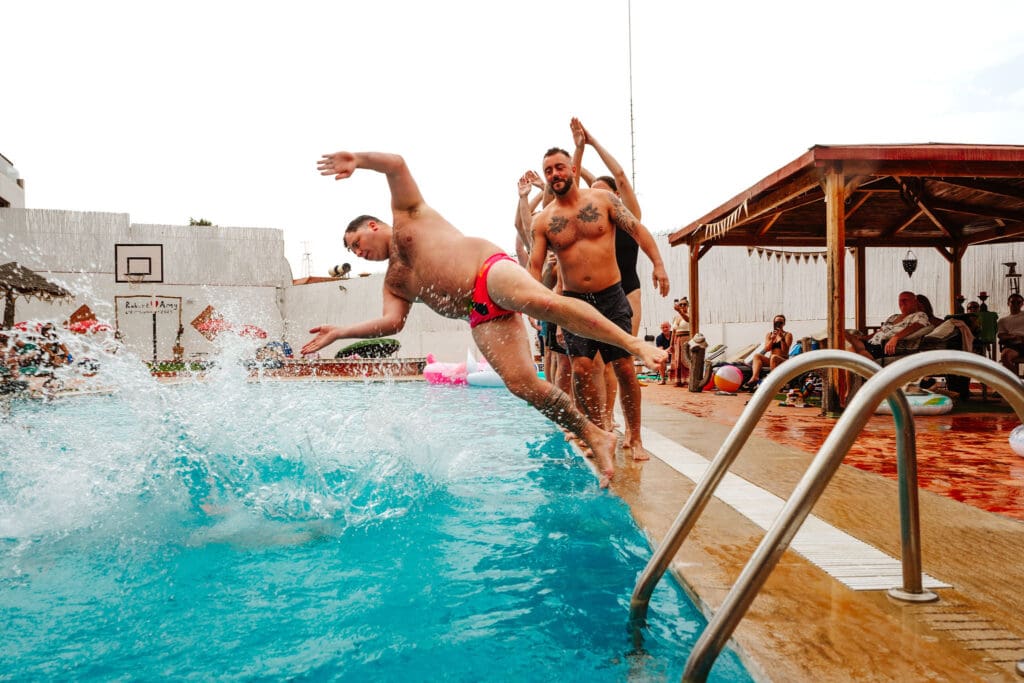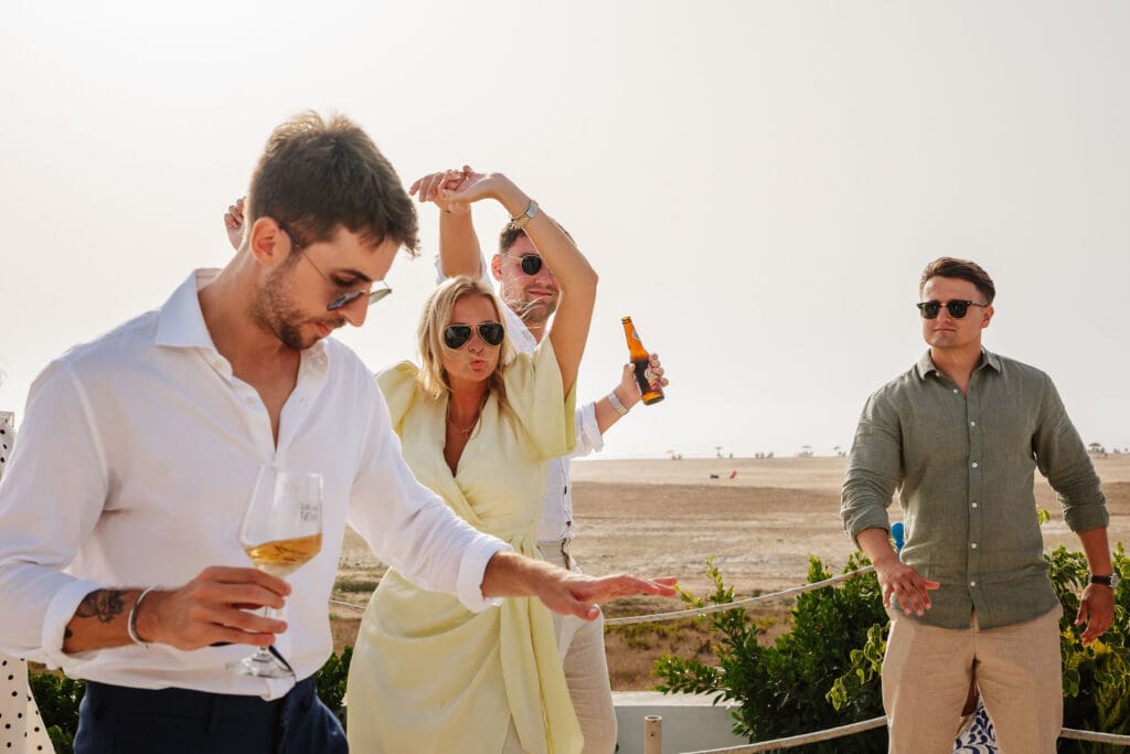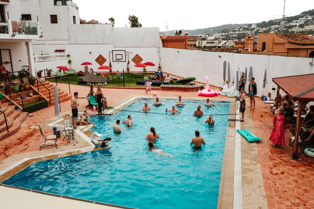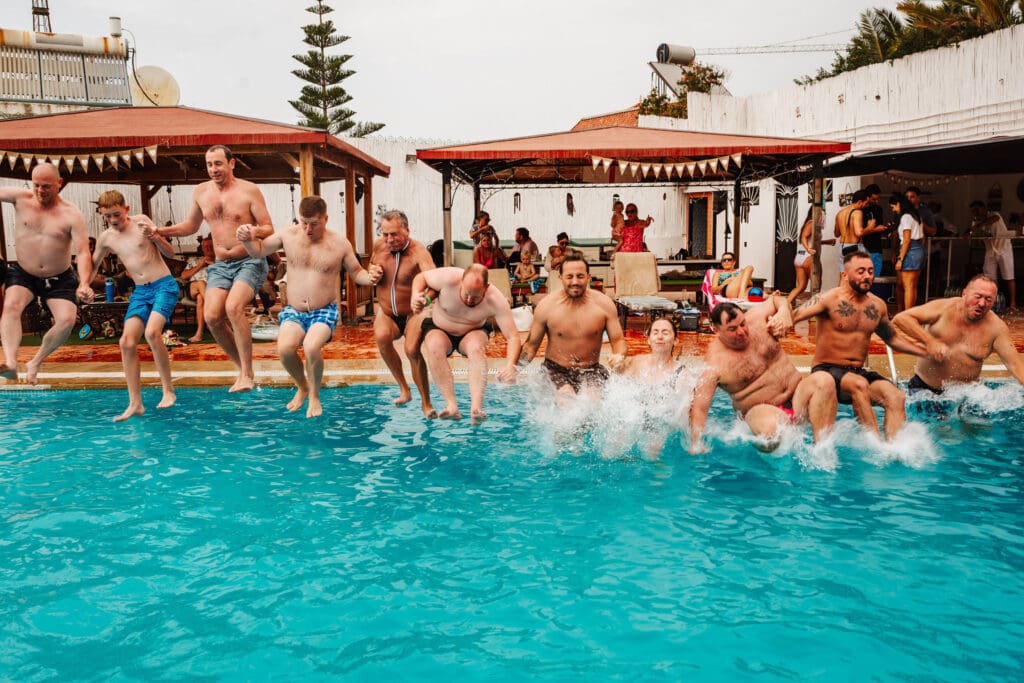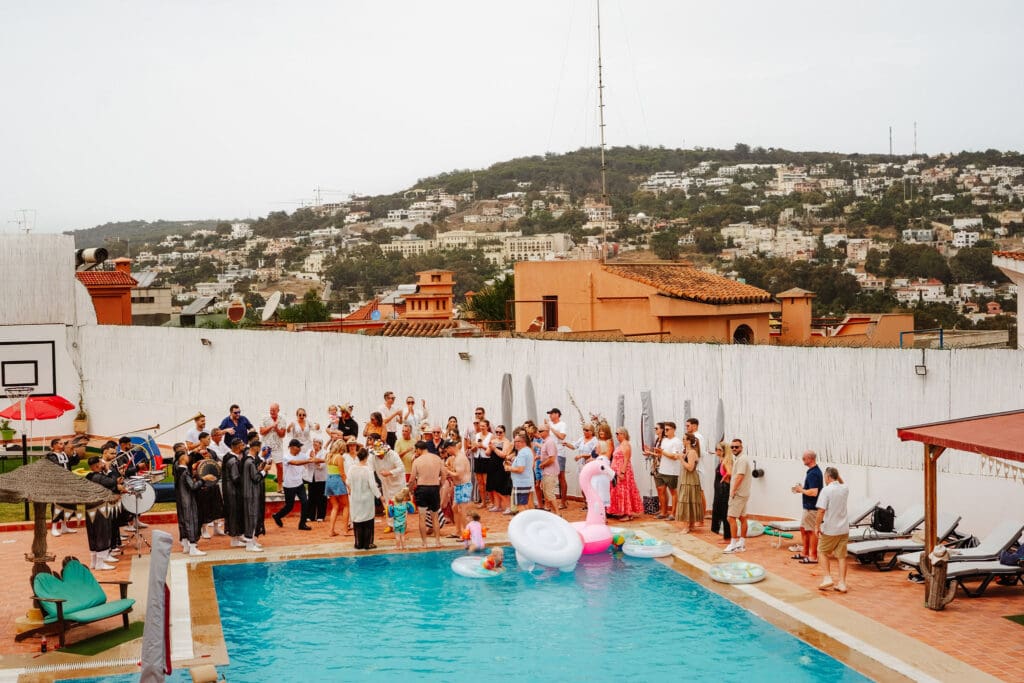 Day three was a pool party at the family villa, where the fun and crazy antics continued. The Hamid Chaka Band got everyone on their feet, and soon there were flamingos, rubber rings, and competitions happening all over the place. Rob and Amy wore their husband and wife swimwear and launched into the water in style!