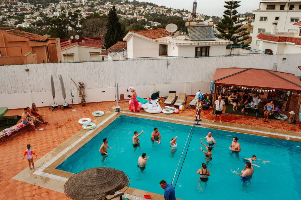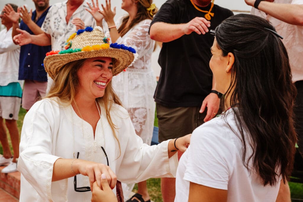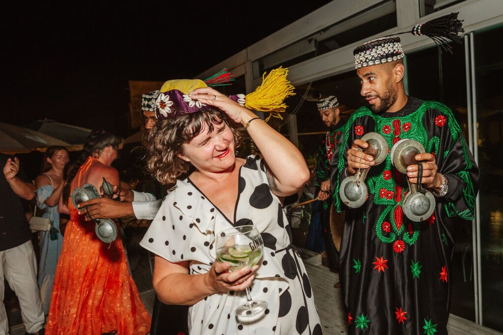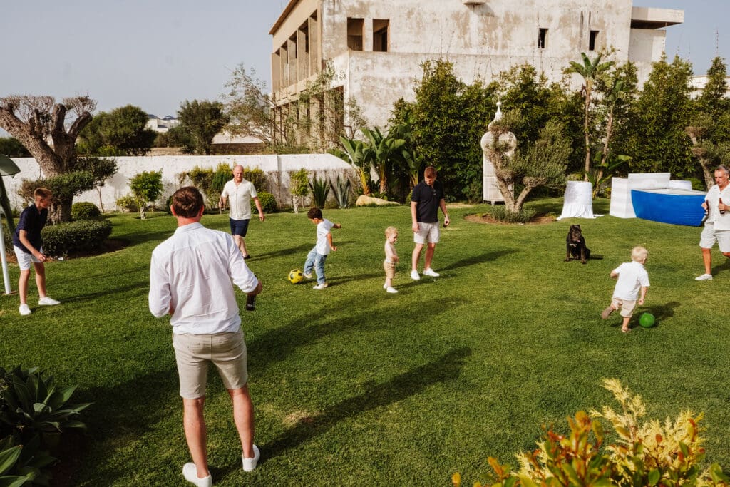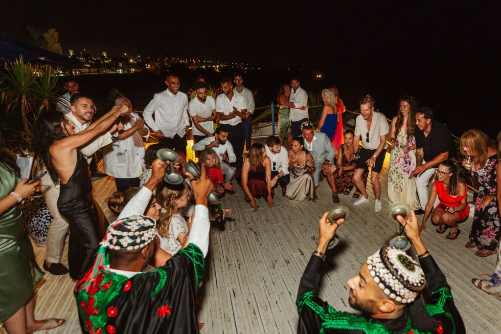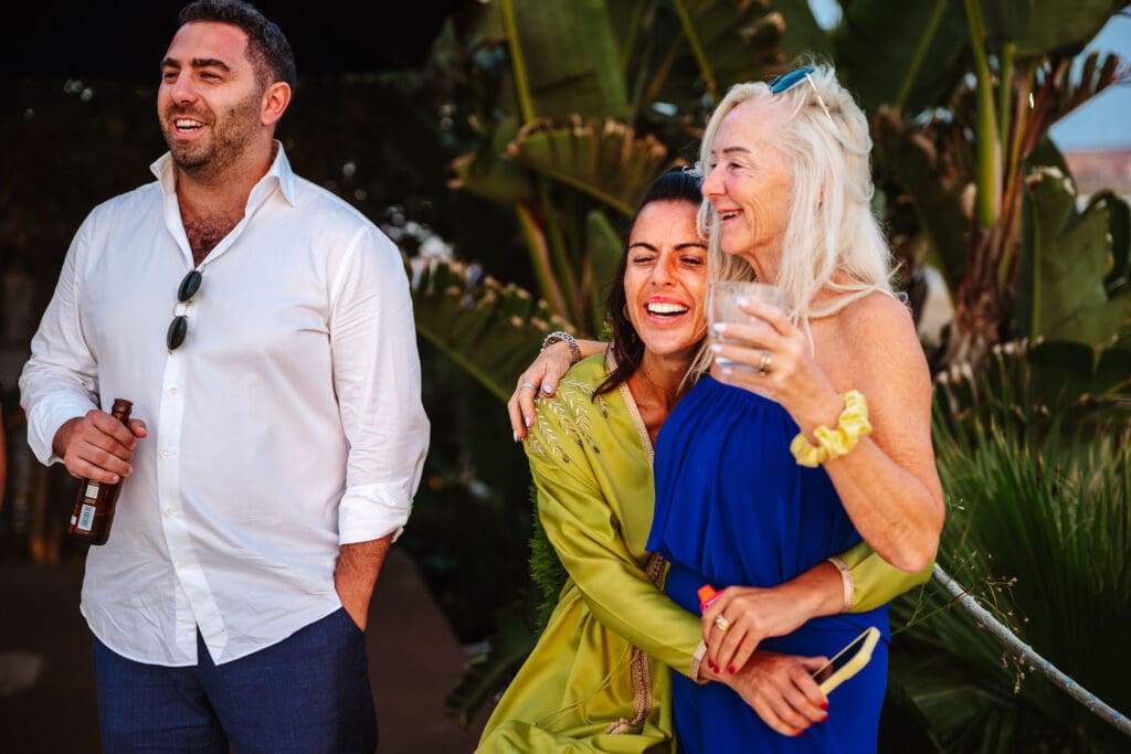 We started at Amy’s parents’ villa, where people gathered on the evening before the wedding. Drinks, hugs, chats, and Moroccan drumming kicked off the weekend, and people spent some time catching up before the main event.