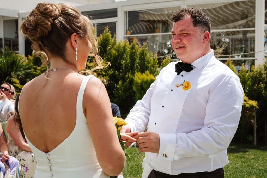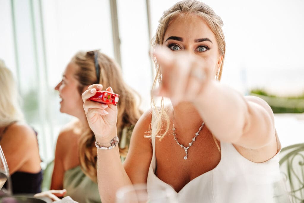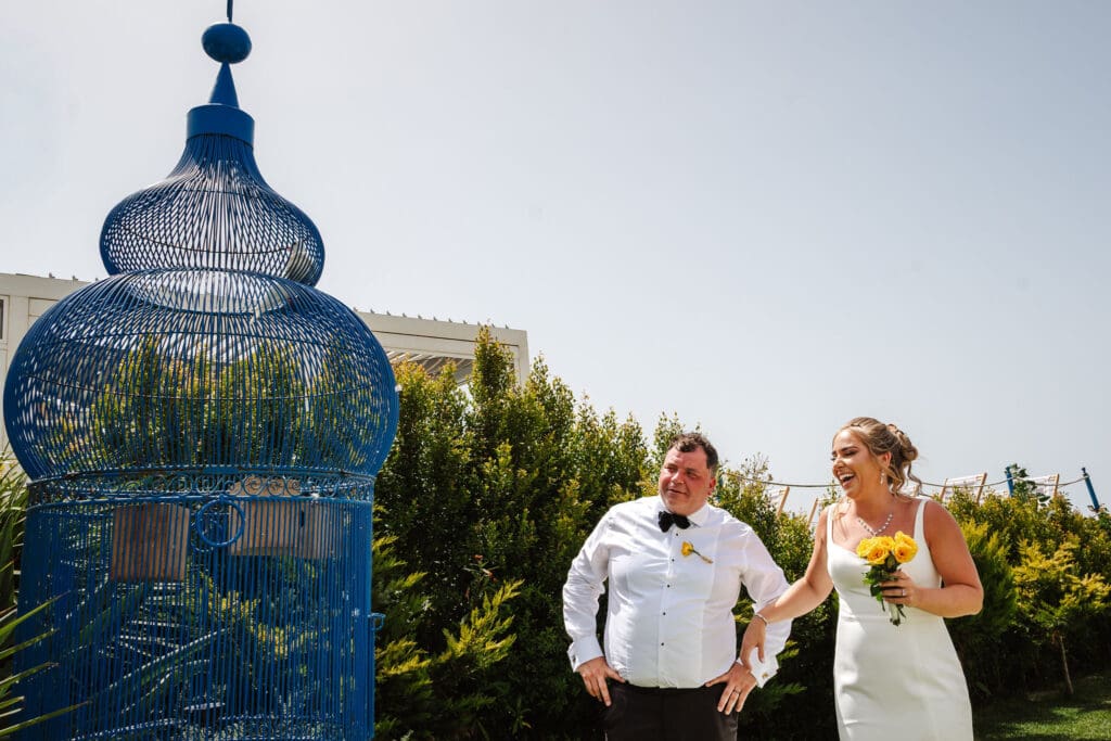 Their wedding ceremony at L’Ocean Restaurant was laid back and fun, making the most of the views of the beach from start to finish.