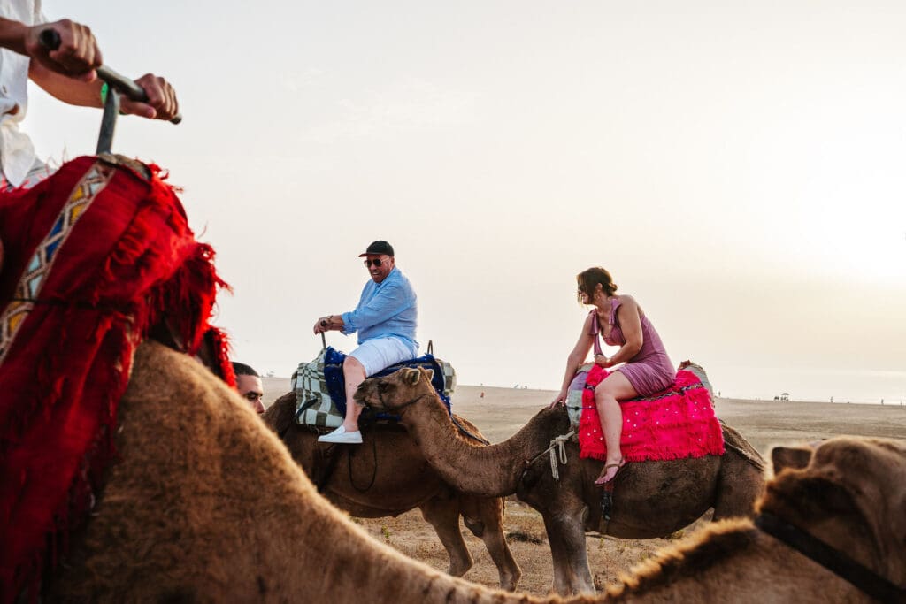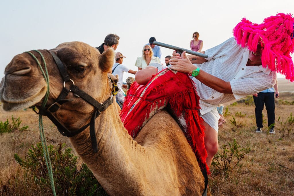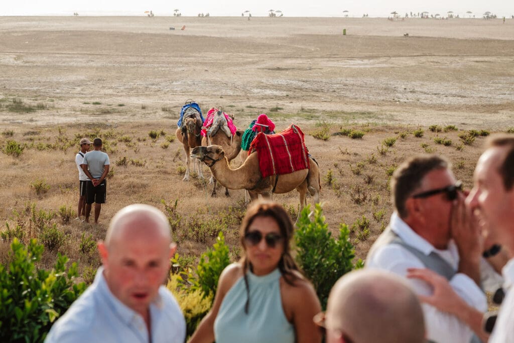 From there, it was straight into dinner, and the party got started with dancing and speeches between courses. The outdoor space meant guests could spread out and enjoy the evening breeze on the terrace and lawn, kicking back with games and then some eventful camel rides on the beach.